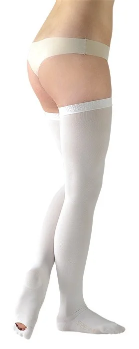 Stehenní antitrombotické punčochy první kompresní třídy (18 - 21 mmHg) s inspekčním otvorem a úzkým lemem se silikonovými nopky.