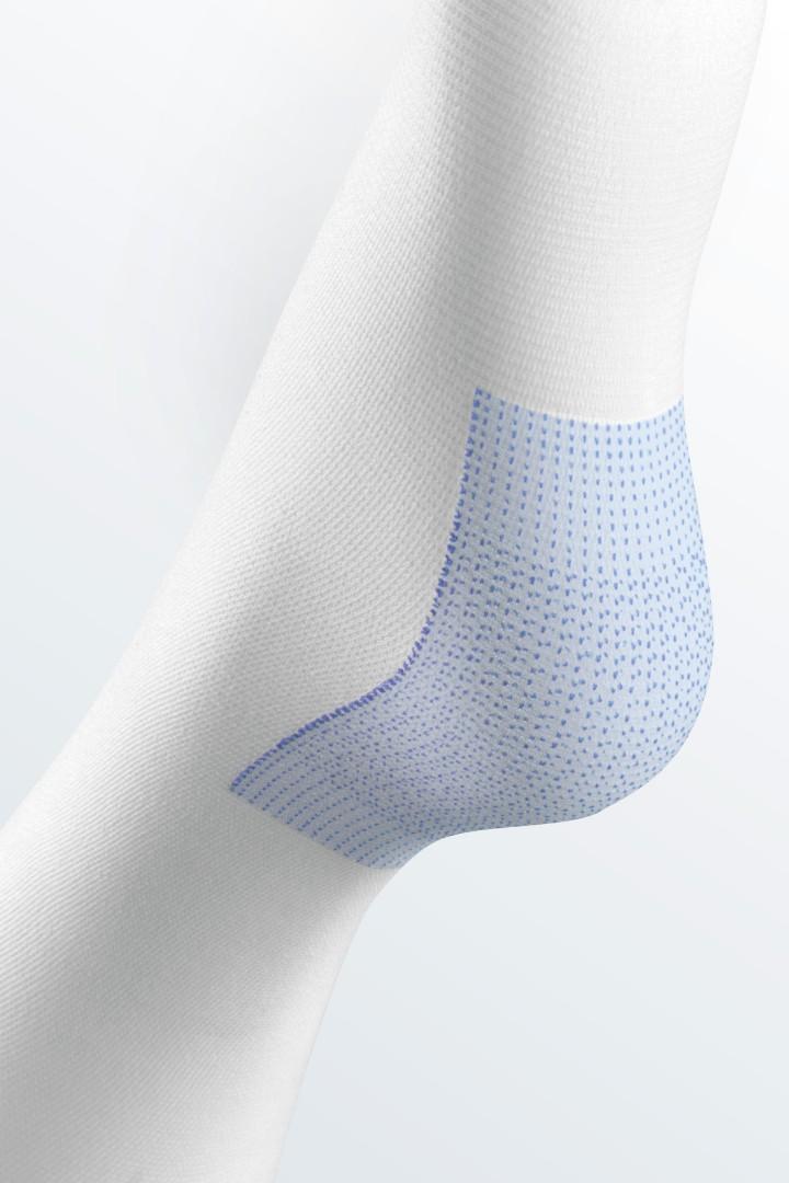 • barevně rozlišená pata: barevně rozlišená pata s vnitřním sametovým povrchem redukuje nebezpečné proleženiny, zjednodušuje třídění a ukazuje, že pata punčochy správně padne