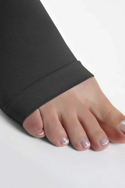 - unikátní způsob přišití lemu v předpětí - díky unikátní technologii je dosaženo naprosto přesného a pevného přišití lemu k punčoše; tato technologie zaručuje, že je šev po celém obvodu pravidelný, dokonale plochý a nezpůsobuje nepříjemné otlaky