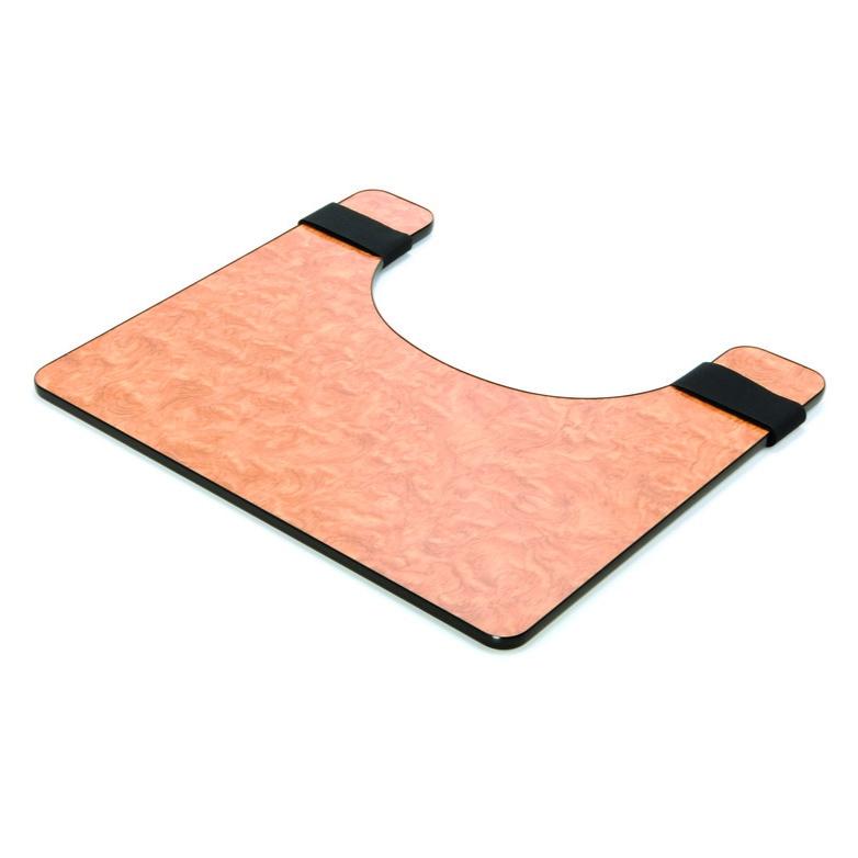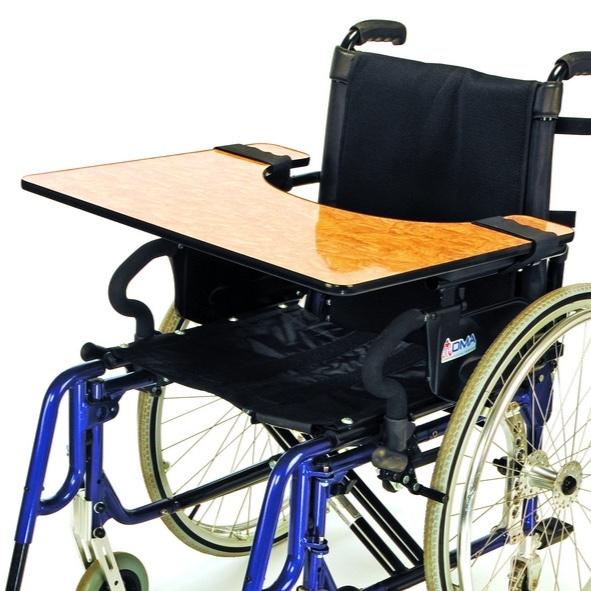 Stolek lze jednoduše a rychle upevnit na většinu vozíků pomocí suchého zipu přes postranice.