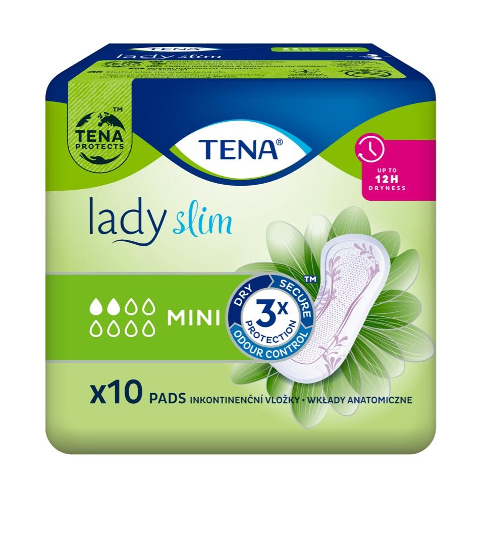 TENA Lady Slim Mini jsou malé, tenké a spolehlivé vložky, určené pro lehký stupeň inkontinence.