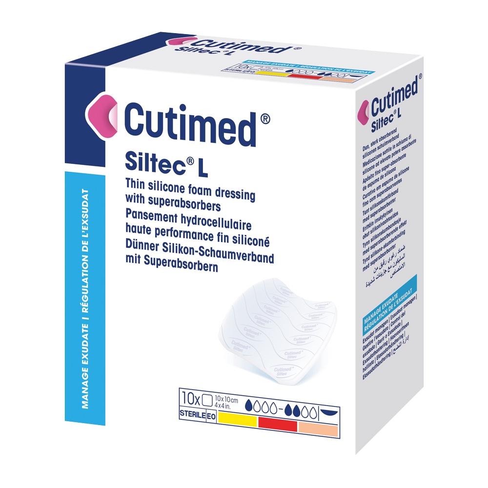 Cutimed® Siltec® L je silikonem potažené pěnové krytí. Cutimed® Siltec® L je sterilní, absorpční krytí z polyuretanové pěny pro atraumatické převazy. Obsahuje superabsorpční proužky, které absorbují a uzamykají exsudát. Kontaktní strana je perforovaná silikonová vrstva, která umožňuje přilnutí ke kůži v okolí rány, ale ne k vlhké spodině rány nebo k nově vytvořené epiteliální tkáni. To minimalizuje trauma a bolest při převazech. Vnější vrstva je vodoodpudivá, přesto propustná pro kyslík a páry. Pěnové krytí a superabsorpční proužky jsou navrženy tak, aby absorbovaly a uzamykaly přebytečnou tekutinu z rány uvnitř krytí, podporovaly vlhké prostředí rány a minimalizovaly riziko macerace. Cutimed® Siltec® L je vysoce přizpůsobivý a poskytuje ochranu místa rány. Cutimed® Siltec® L nezanechává v ráně žádné zbytky. Krytí spolehlivě zadržuje exsudát i při stlačení. V případě potřeby lze krytí zmenšit na požadovanou velikost. Cutimed® Siltec® L je extra tenký a měkký pro větší pohodlí při nošení.