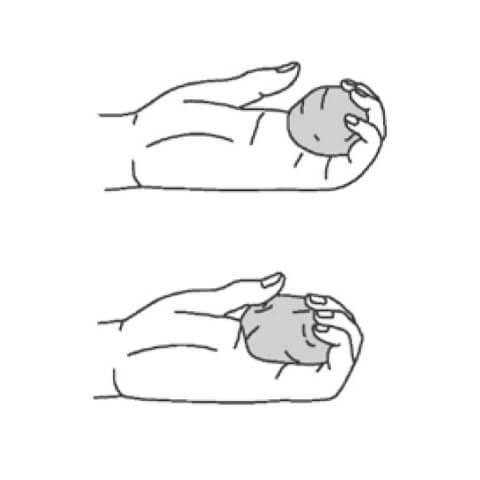 Cvičení s plastovou hmotou spočívá ve válcování materiálu na vnější a vnitřní straně ruky, drcení, mačkání nebo stlačování hmoty jedním prstem.
