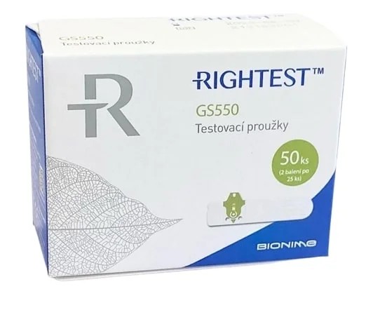 Testovací proužky Rightest GS550 jsou určeny pro kvantitativní měření koncentrace glukózy v kapilární krvi s odběrem z prstu, dlaně nebo předloktí. Jsou určeny pouze pro in vitro diagnostiku, zejména při selfmonitoringu diabetiků.