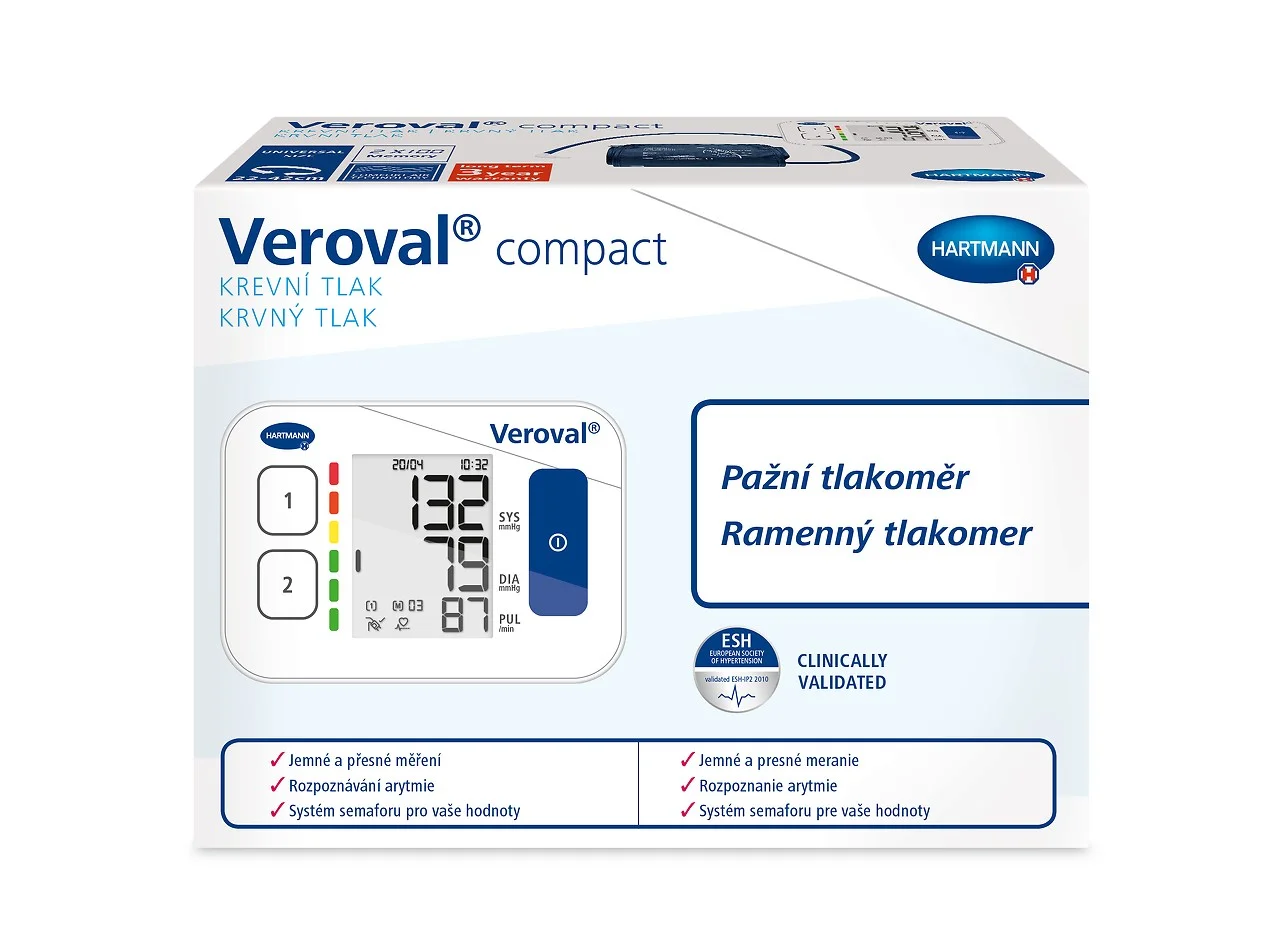 Tlakoměry Veroval® dodává na trh značka HARTMANN, na jejíž zdravotní pomůcky se již přes 200 let spoléhají lidé ve více než 100 zemích světa. Značka Hartmann svým tlakoměrům věří, a proto na tlakoměr Veroval® COMPACT dává nadstandardní 3letou záruku.