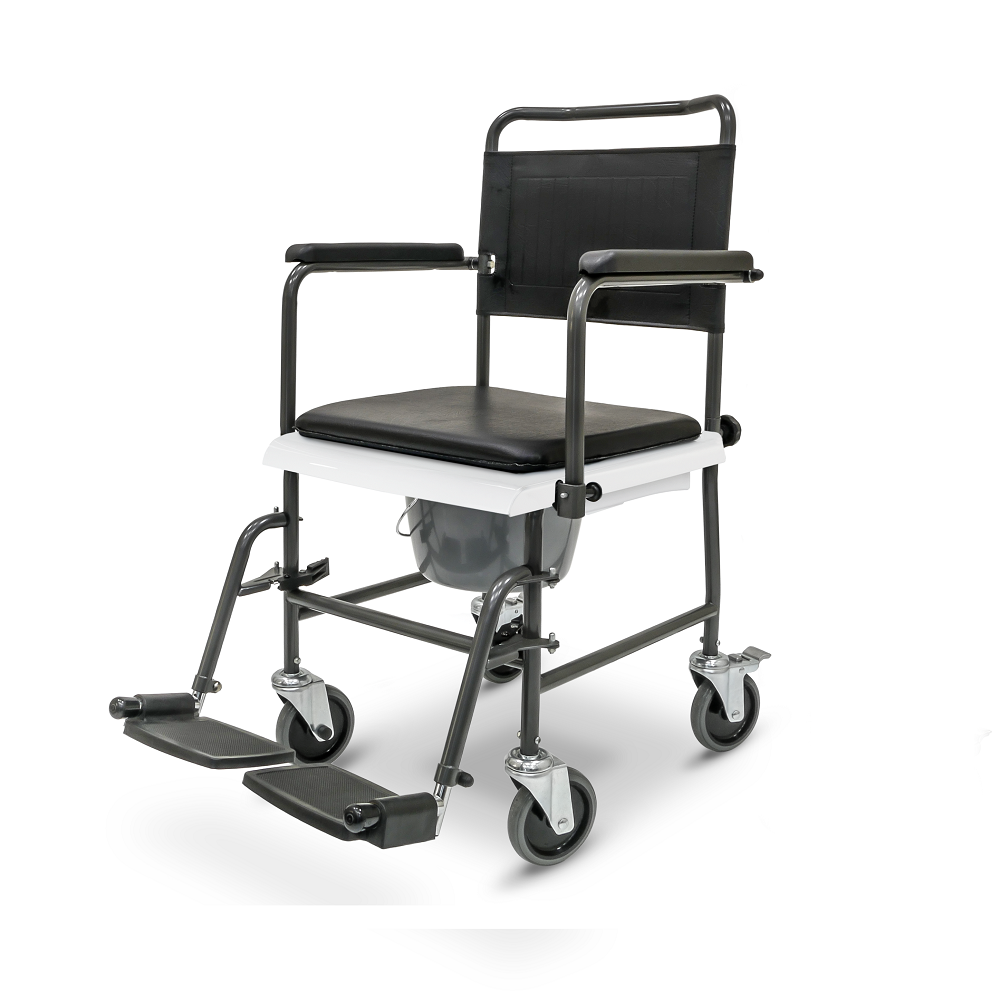 Pojízdné toaletní křeslo v práškované verzi se vyznačuje dlouhou životností a robustností rámu. Práškovaný povrch toaletního křesla chrání křeslo před korozí a nečistotami.