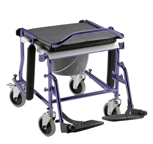 Pojízdné toaletní křeslo je praktickým řešením pro přemísťování pacientů a umožňuje rovněž umístění křesla přímo nad toaletu. Křeslo má vysoké opěradlo pro pohodlné sezení a opěrku na ruce, která se dá sklopit. Zadní kolečka jsou vybavena brzdami pro bezpečné použití. Pro usnadnění přepravy se opěrky na nohy dají sklopit a demontovat.