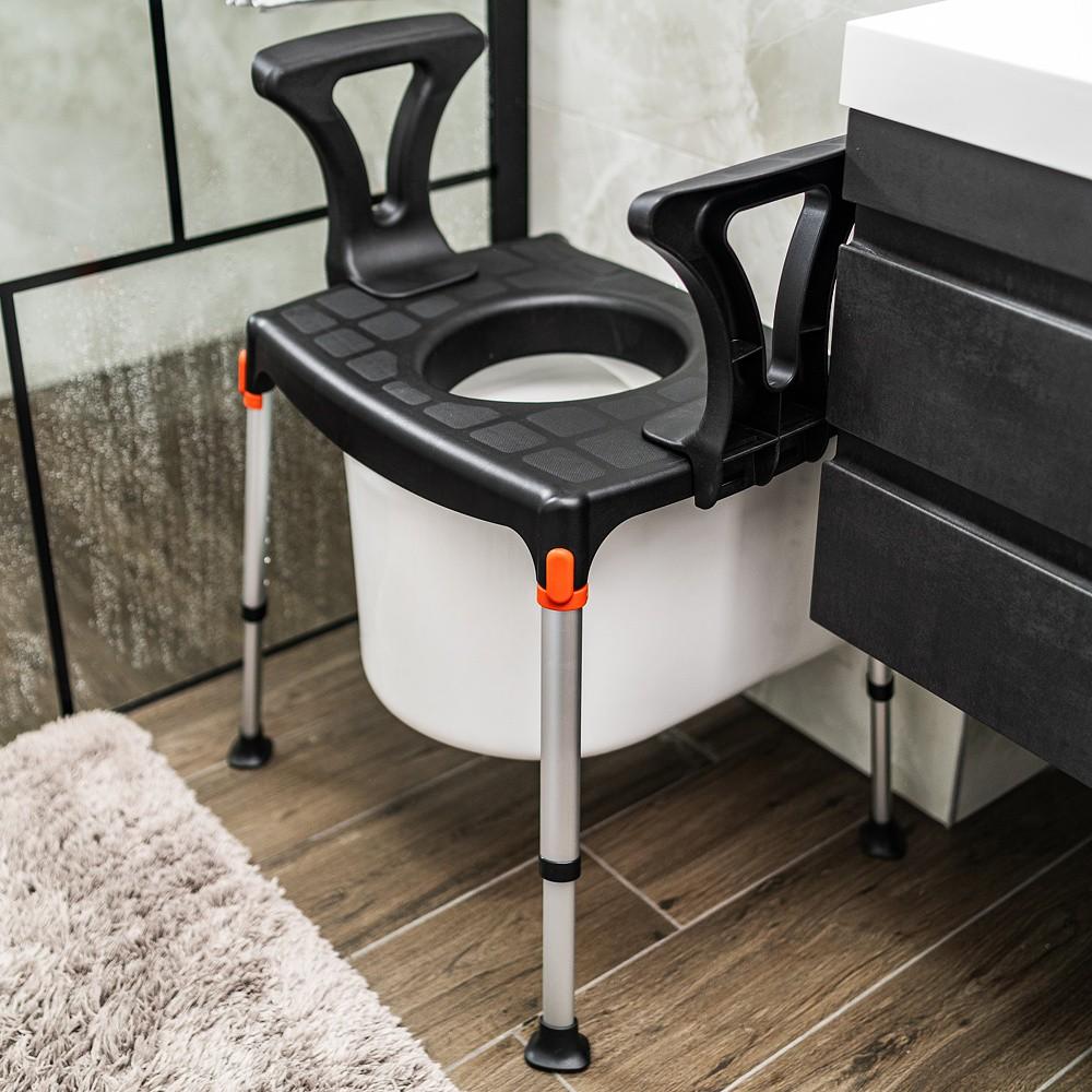 Židli lze jednoduše složit a rozložit bez použití nářádí a je tak vhodná i při přesunech z místa na místo. Díky modulárnímu systému je navíc možné použít jen samotnou sedačku a dle potřeby ji případně doplnit jednou nebo oběma područkami. Bez problémů si ji tak přizpůsobíte svým individuálním potřebám. Navíc ji lze použít také ke sprchování, po vyjmutí nádoby jako nástavec na WC nebo po doplnění polstrováním jako odpočinkovou židli.