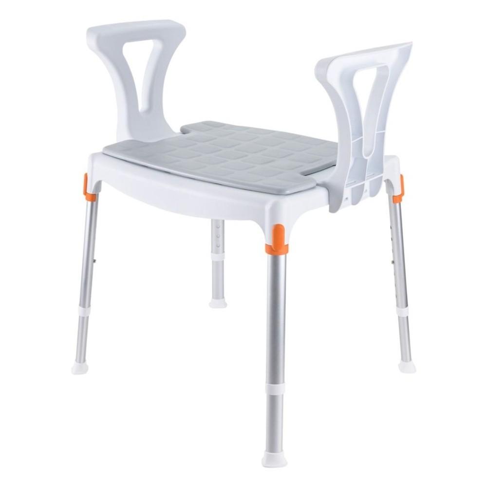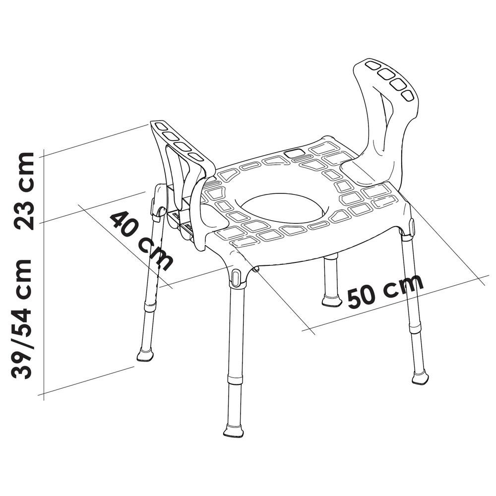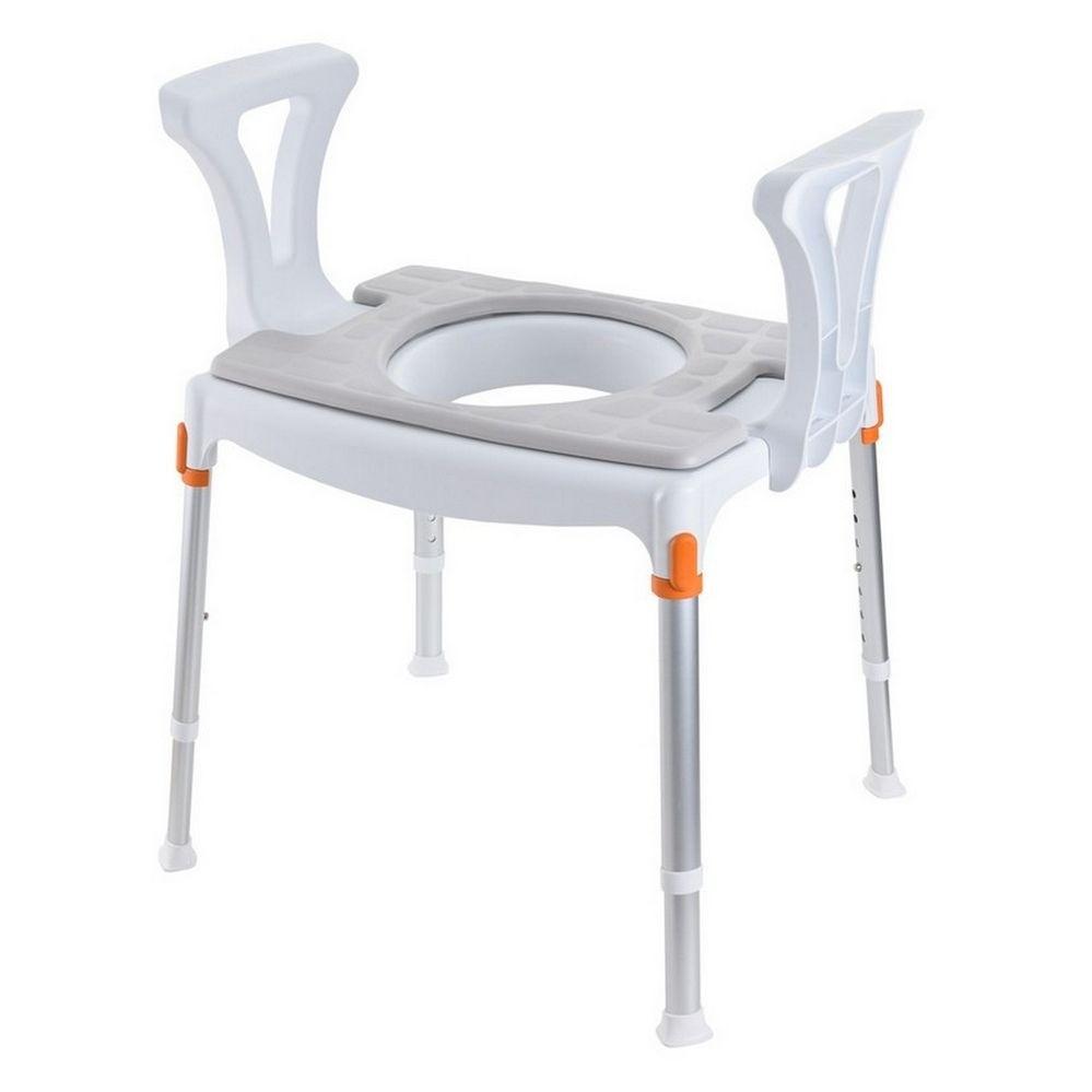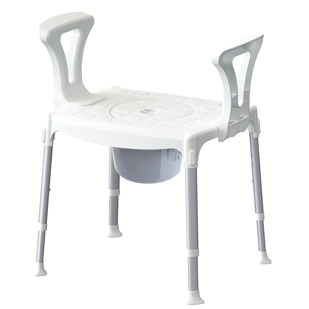Židli lze jednoduše složit a rozložit bez použití nářádí a je tak vhodná i při přesunech z místa na místo. Díky modulárnímu systému je navíc možné použít jen samotnou sedačku a dle potřeby ji případně doplnit jednou nebo oběma područkami. Bez problémů si ji tak přizpůsobíte svým individuálním potřebám. Navíc ji lze použít také ke sprchování, po vyjmutí nádoby jako nástavec na WC nebo po doplnění polstrováním jako odpočinkovou židli.