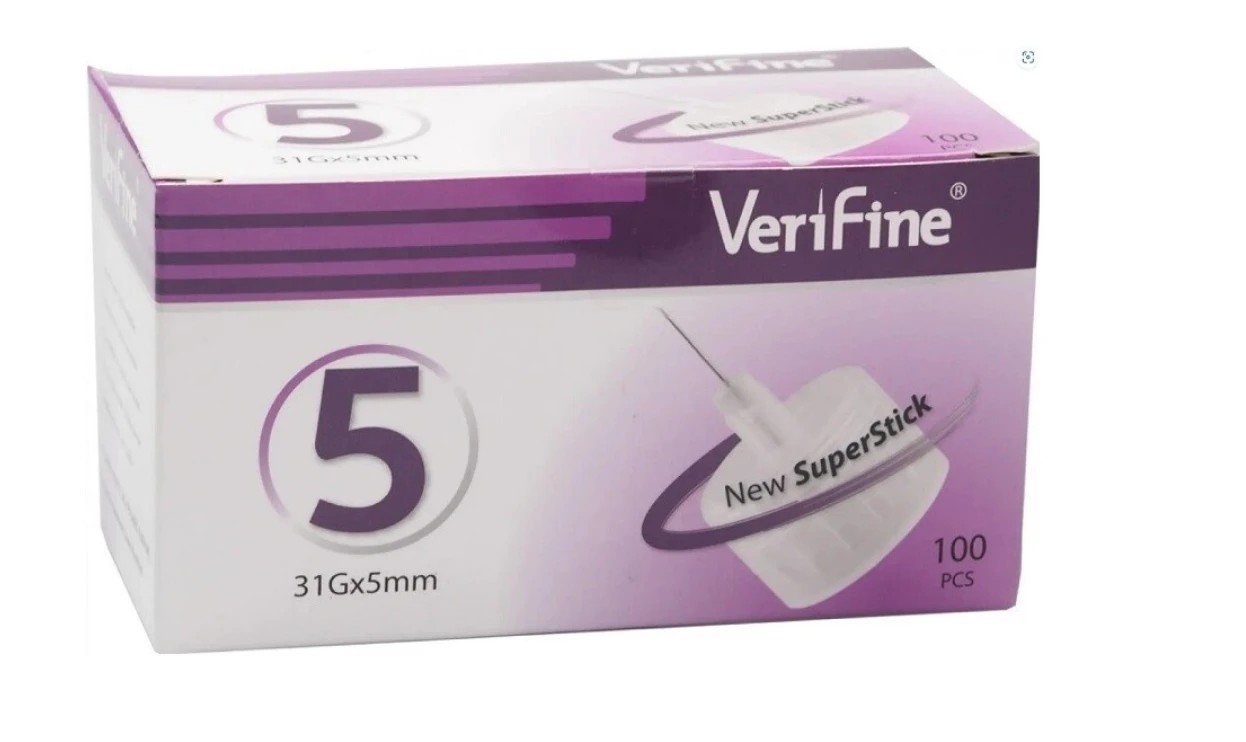 Jehly Verifine 5 jsou aplikační jehly pro inzulínová pera, které jsou díky speciální konstrukci závitu vhodná pro všechny obvyklé typy inzulínových per. Silikonová povrchová vrstva jehličky spolu s atraumaticky hladkou fasetou zajišťuje téměř nevnímatelný vpich.