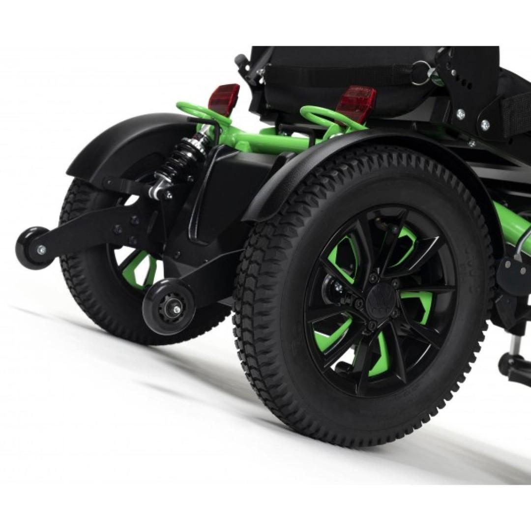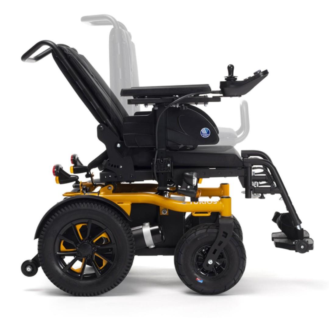 Turios je kompaktní elektrický invalidní vozík. Díky pohonu zadních kol je vhodný pro vnitřní i venkovní použití. Disponuje 50 Ah silnými bateriemi s dojezdem až 35 km při standartní rychlosti 6 km/h. V základním provedení Turiosu se můžete těšit na velká kola, zadní o rozměru 350 mm, přední až 260 mm, která vám pomohou překonávat překážky. Turios je lehký a úzký elektrický vozík, který se svými rozměry vejde na každou plošinu nebo rampu.