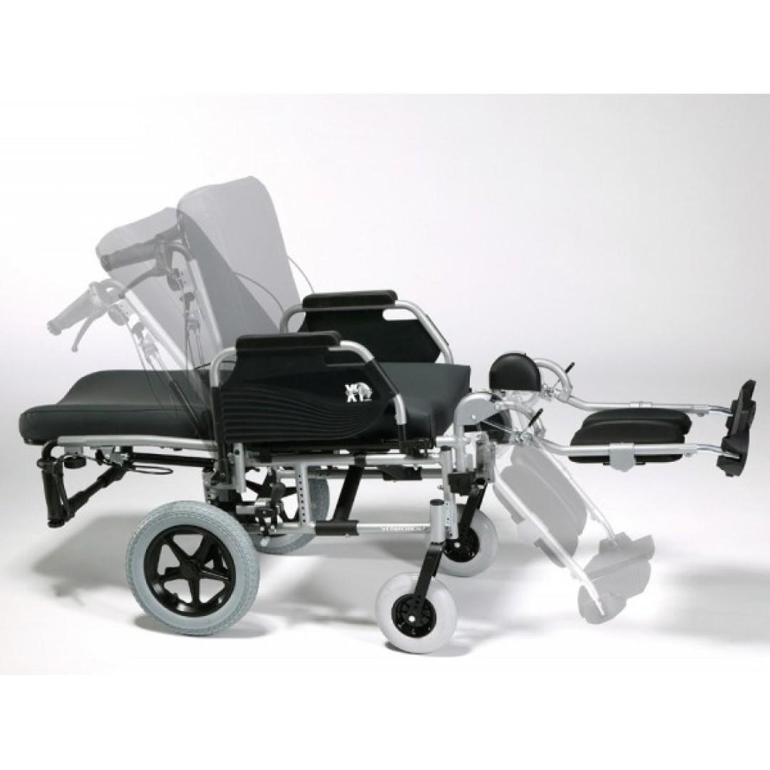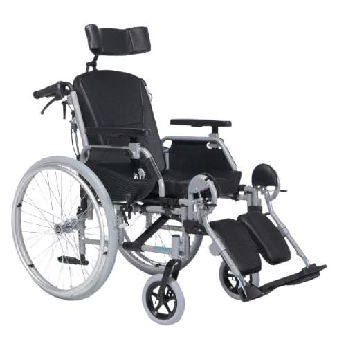 Lehký hliníkový invalidní vozík se sklopným opěradlem 90 °, zpevněný kříž a rychloupínací systém kol QuickRelease. Standardně vybaven krátkými opěrkami pro snadný přístup ke stolu.