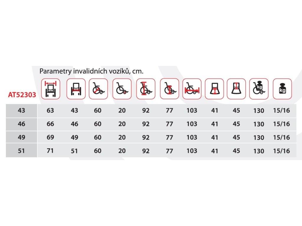 Invalidní vozík AT52303 je určen pro mobilitu osob se zdravotním postižením a jako podpora při každodenních činnostech.