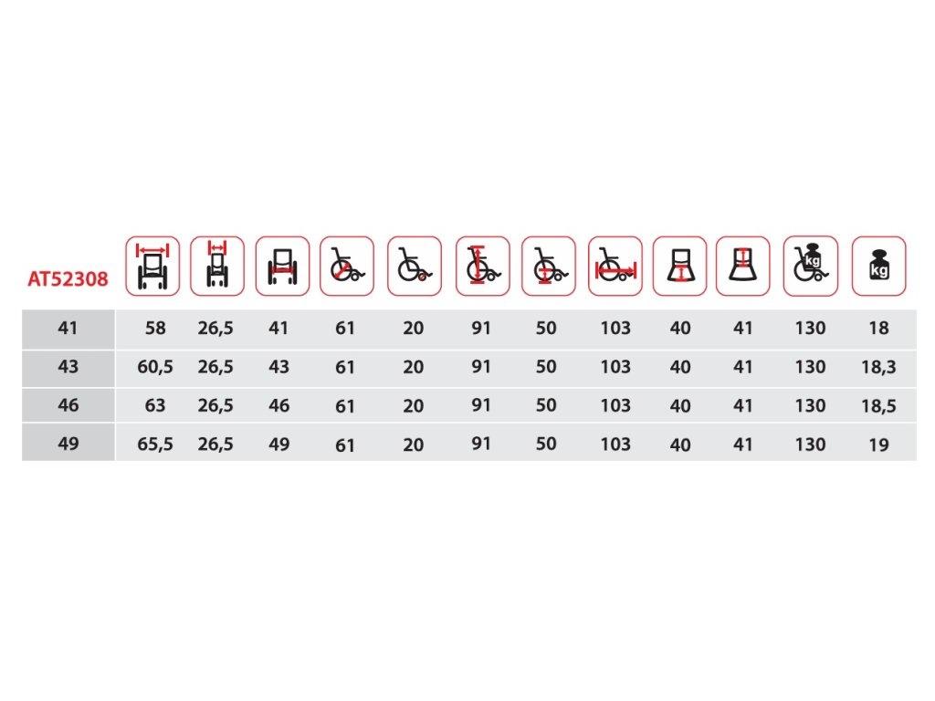 Základní mechanický vozík AT52308 Šířka sedačky 49cm