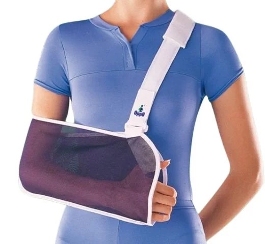 Závěs slouží k podepření ruky a odlehčení ramene po úrazech např. zlomeninách.