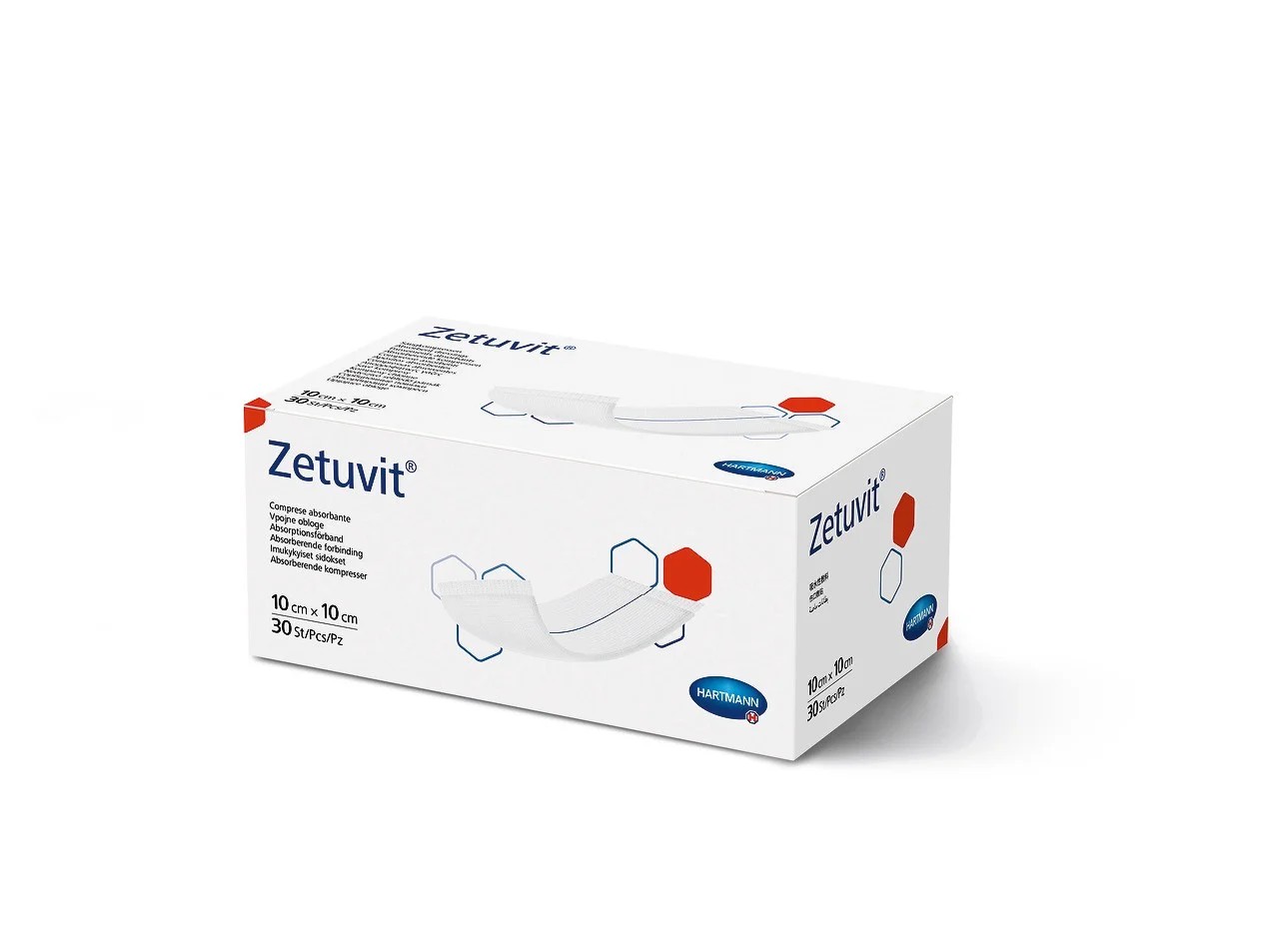 Kompres Zetuvit je vyroben z vysoce bělené buničiny s vysokou savou schopností. Savé jádro vyrobené z vloček buničiny účinně odvádí sekret z rány. Vrstva na vnější straně kompresu je hydrofobní a zároveň prodyšná